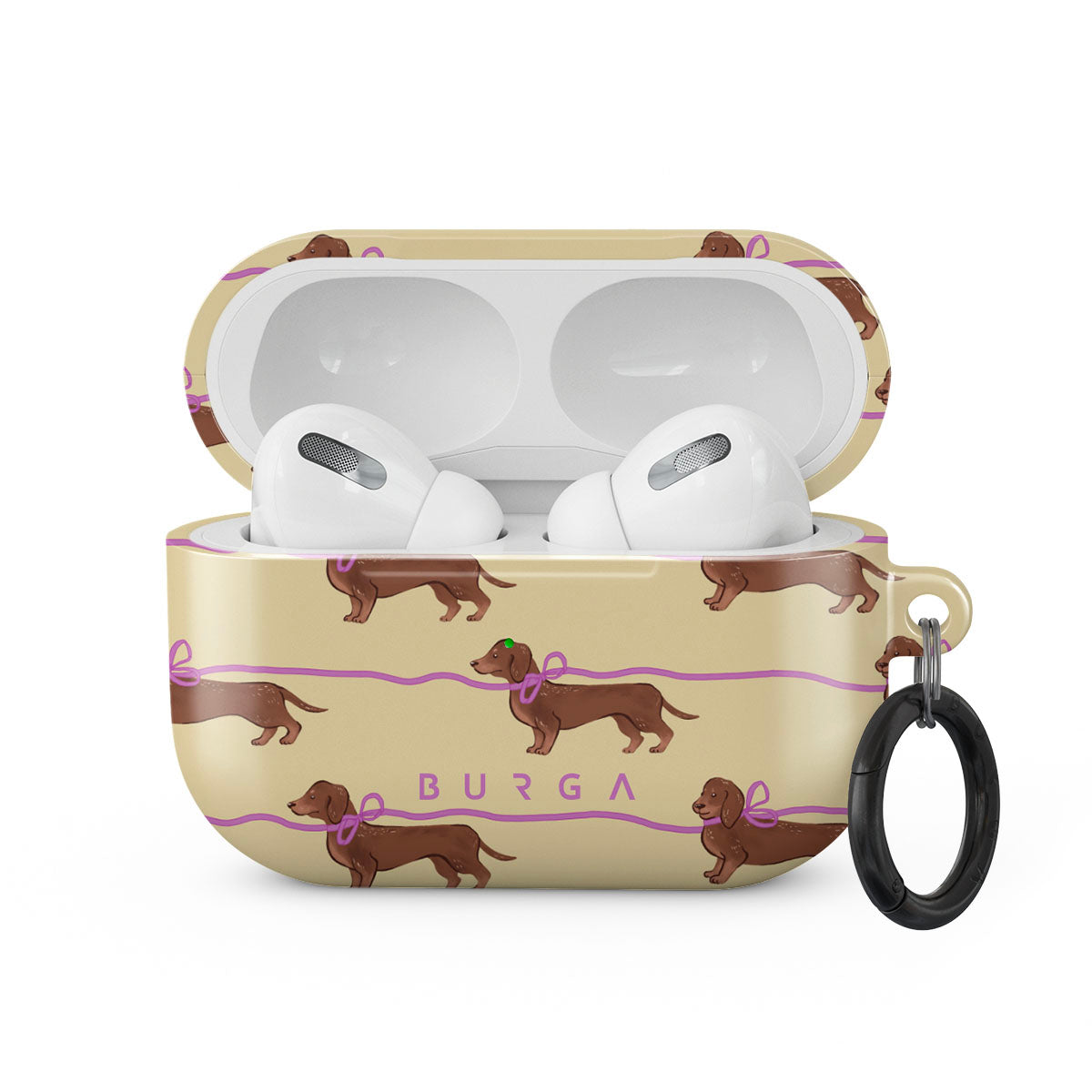 This Apple AirPods Pro case cover design doesn’t believe in time, only vibes. It features sassy sausage dogs with bows who, like you, are running 15 minutes behind—and blaming Mercury.