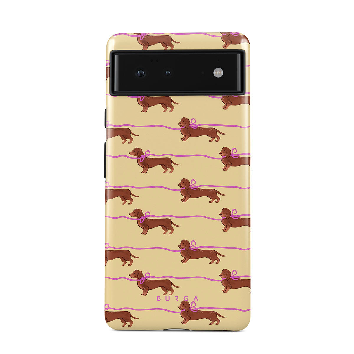 This Google Pixel 6a phone case design doesn’t believe in time, only vibes. It features sassy sausage dogs with bows who, like you, are running 15 minutes behind—and blaming Mercury.