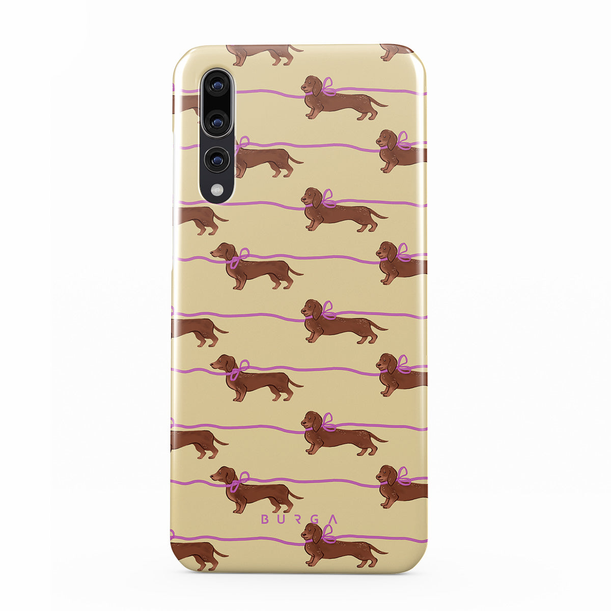 This Huawei P20 phone case design doesn’t believe in time, only vibes. It features sassy sausage dogs with bows who, like you, are running 15 minutes behind—and blaming Mercury.