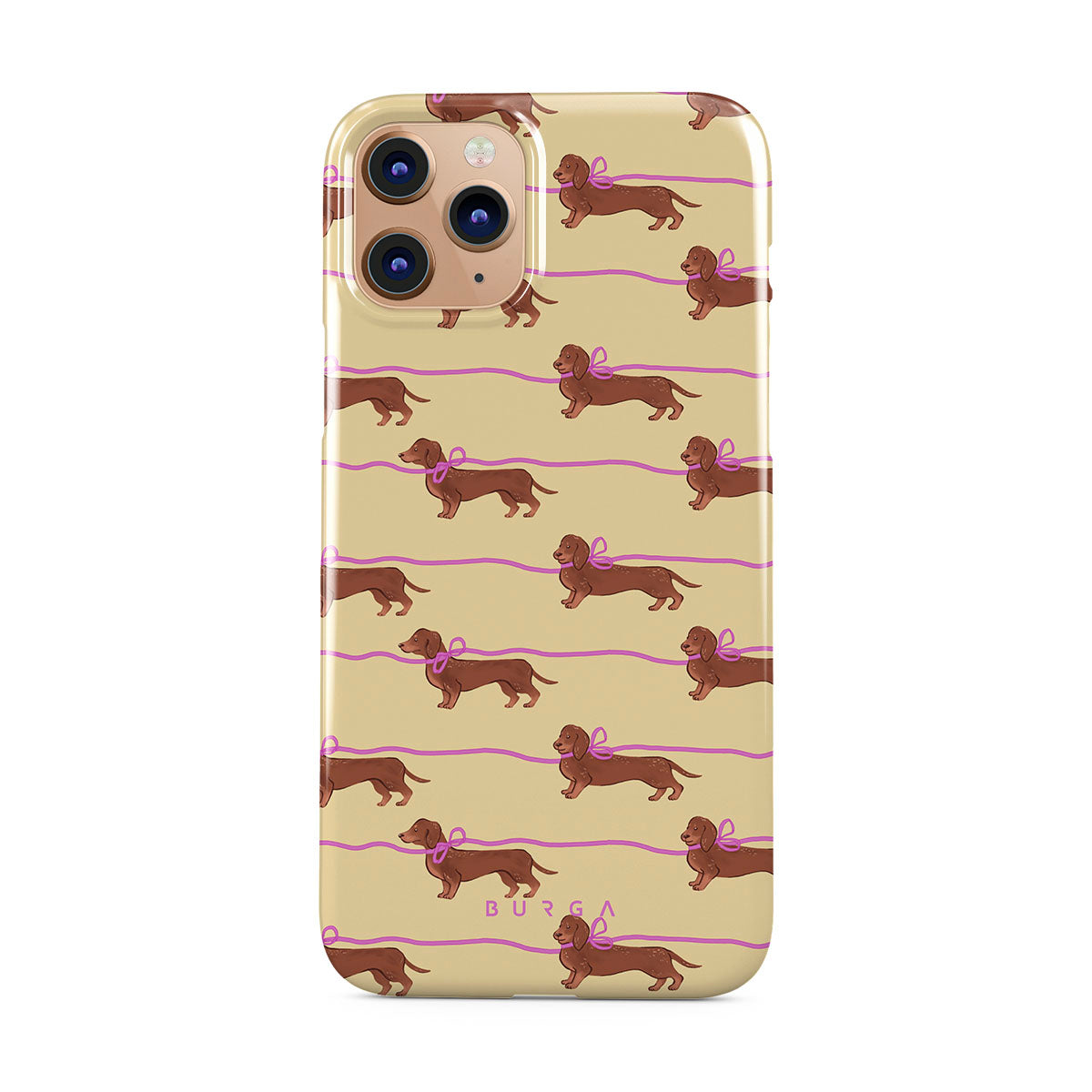 This iPhone 11 Pro phone case design doesn’t believe in time, only vibes. It features sassy sausage dogs with bows who, like you, are running 15 minutes behind—and blaming Mercury.