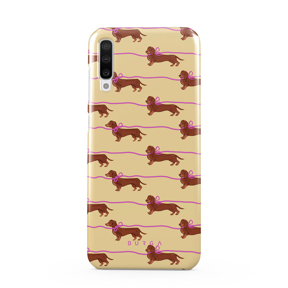 This Samsung Galaxy A70 phone case design doesn’t believe in time, only vibes. It features sassy sausage dogs with bows who, like you, are running 15 minutes behind—and blaming Mercury.