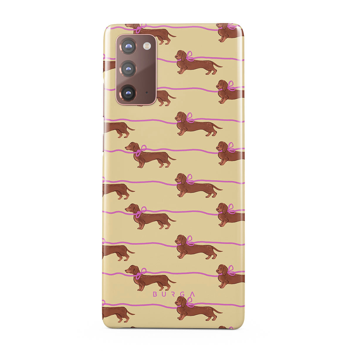 This Samsung Galaxy Note 20 4G / 5G phone case design doesn’t believe in time, only vibes. It features sassy sausage dogs with bows who, like you, are running 15 minutes behind—and blaming Mercury.