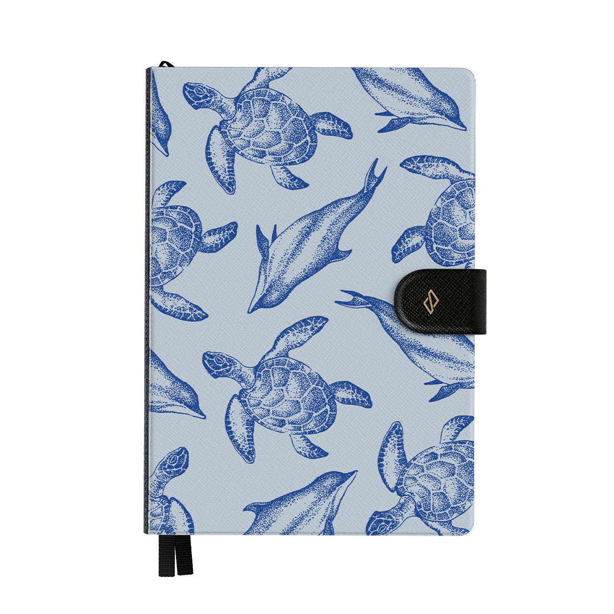 Wrapped in sleek vegan saffiano leather and secured with a sleek magnetic clasp, it's durable enough to handle coffee spills and life's little oops moments.