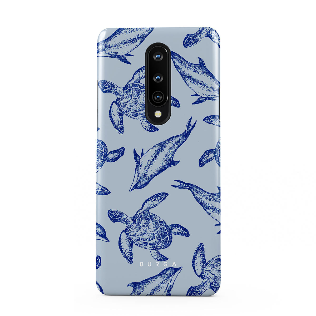 A beautiful design featuring lively turtles and dolphins playfully dancing in serene light blue water. Dive into the ocean's rhythm with our Aquatic Dance OnePlus 8 case.