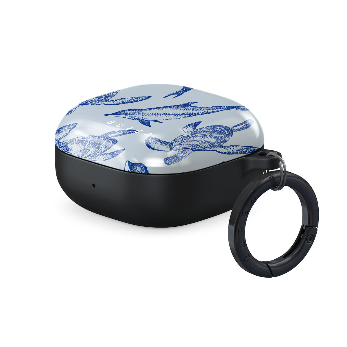 A beautiful design featuring lively turtles and dolphins playfully dancing in serene light blue water. Dive into the ocean's rhythm with our Aquatic Dance Samsung Galaxy Buds 2 case cover.