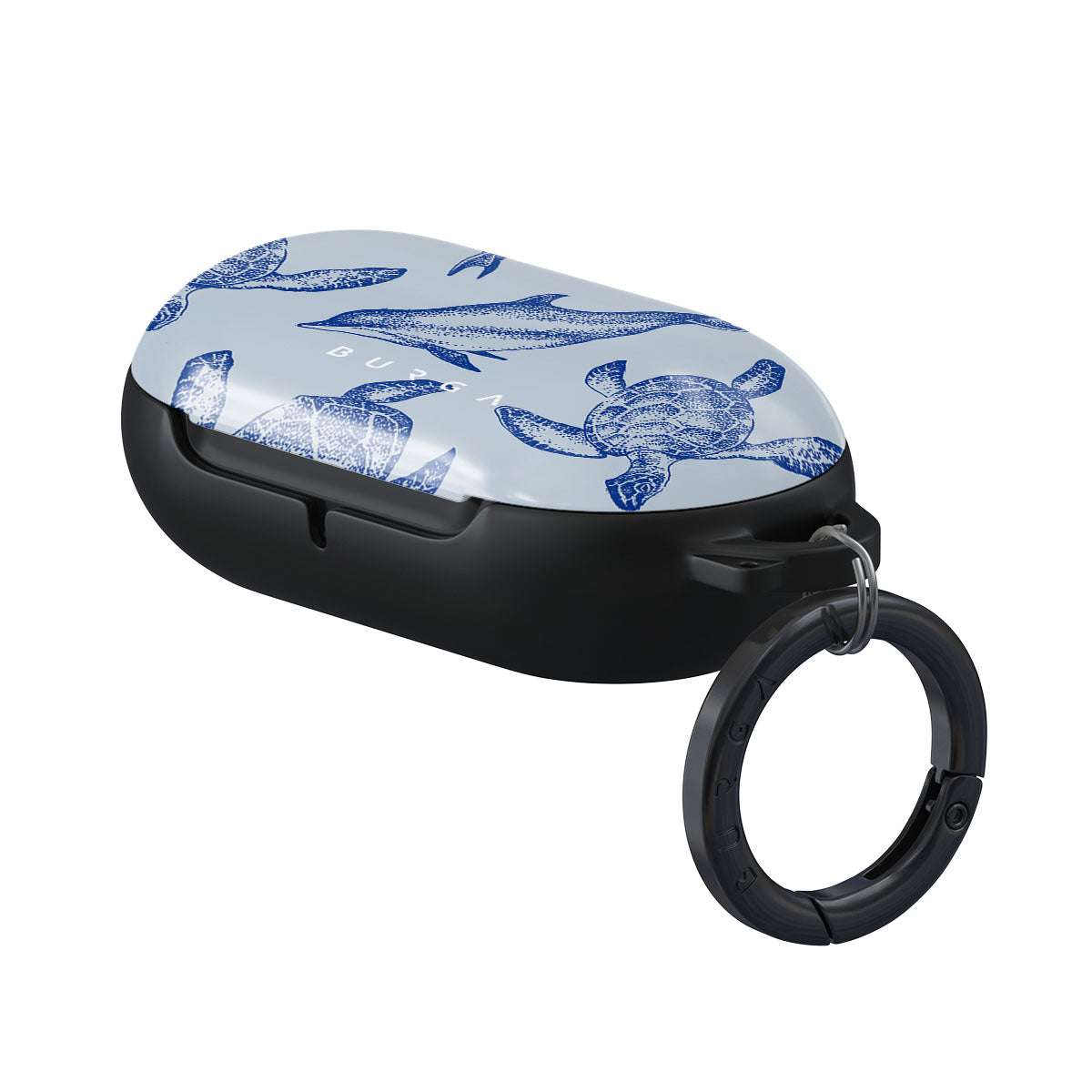 A beautiful design featuring lively turtles and dolphins playfully dancing in serene light blue water. Dive into the ocean's rhythm with our Aquatic Dance Samsung Galaxy Buds case cover.
