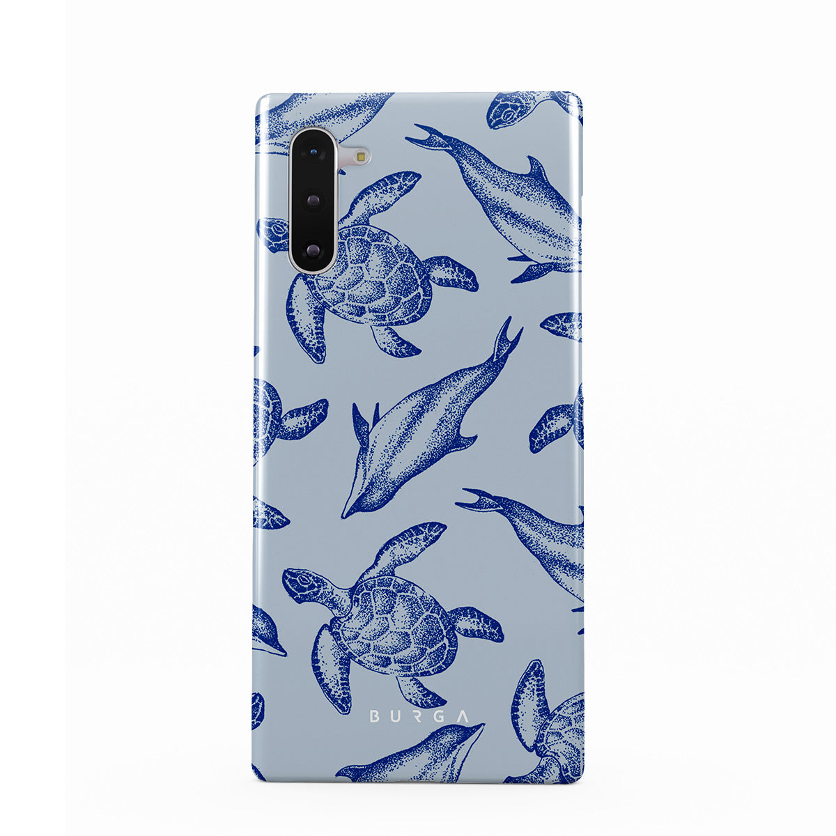 A beautiful design featuring lively turtles and dolphins playfully dancing in serene light blue water. Dive into the ocean's rhythm with our Aquatic Dance Samsung Galaxy Note 10 case.