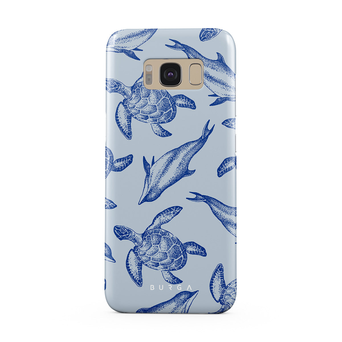 A beautiful design featuring lively turtles and dolphins playfully dancing in serene light blue water. Dive into the ocean's rhythm with our Aquatic Dance Samsung Galaxy S8 case.