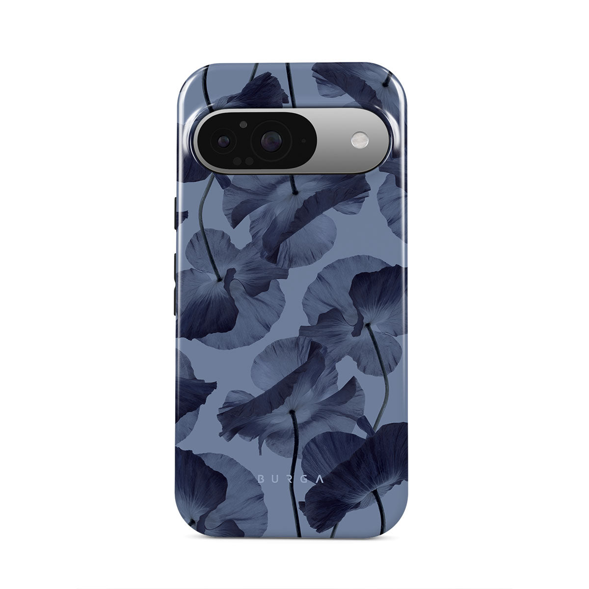 This Google Pixel 9 phone case design blends seamlessly into any workspace, offering a polished yet mysterious touch. Mixing deep blue flowers and a bright blue background, our Archives pattern is perfect for those who like their style to whisper, not shout.