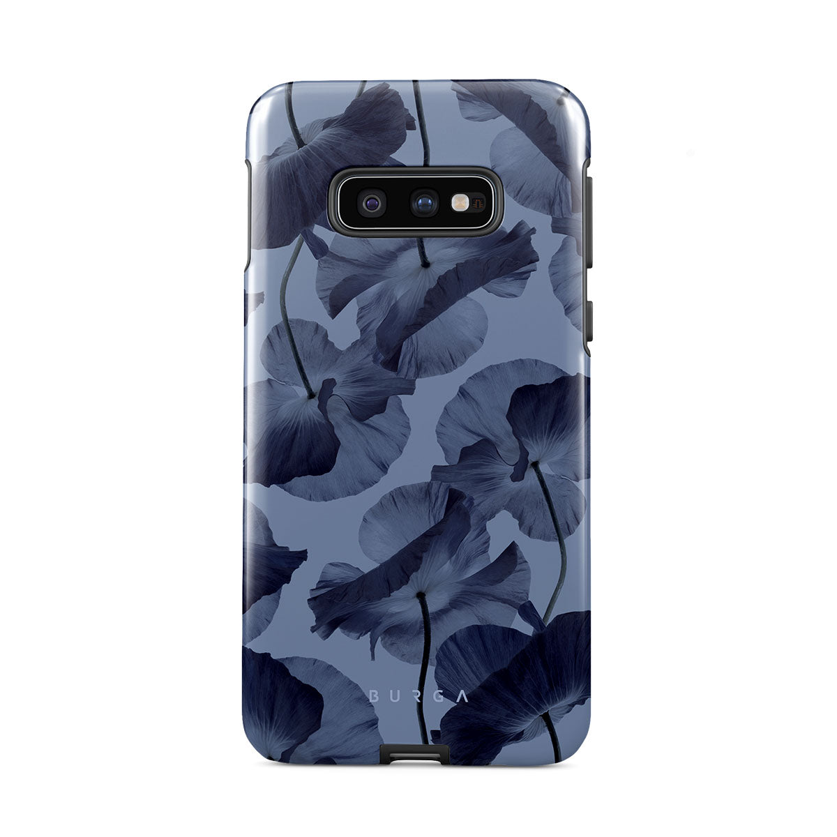 This Samsung Galaxy S10E phone case design blends seamlessly into any workspace, offering a polished yet mysterious touch. Mixing deep blue flowers and a bright blue background, our Archives pattern is perfect for those who like their style to whisper, not shout.