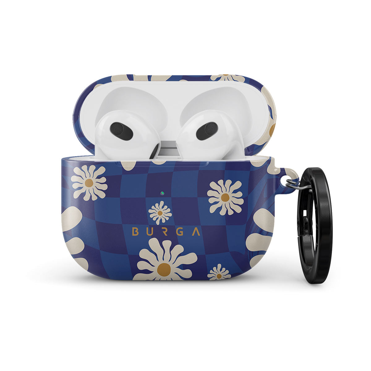 Let us introduce you to our artsy, classy, and inspiring Art Class -Apple Airpods 3 case cover design. Turn your device into a statement piece with the bold white flower pattern in the equally mesmerizing blue and wavy checkered background. Don’t put yourself in a square box just yet. Keep your AirPod in that creative mood for a bit longer.