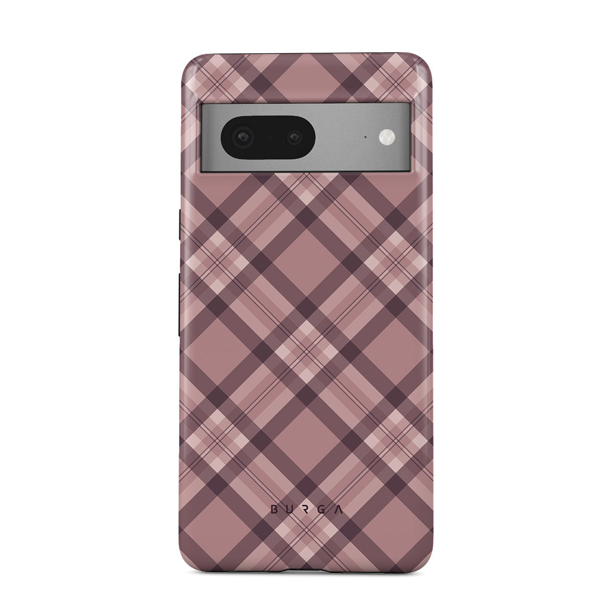 Made for those who hustle hard and look sharp. Our ASAP Google Pixel 7a phone case design features a sleek rosé-gray background with diagonal plaid in soft grey and deep pink—mixing modern flair with understated elegance. For the pros who know that style and speed go hand-in-hand.
