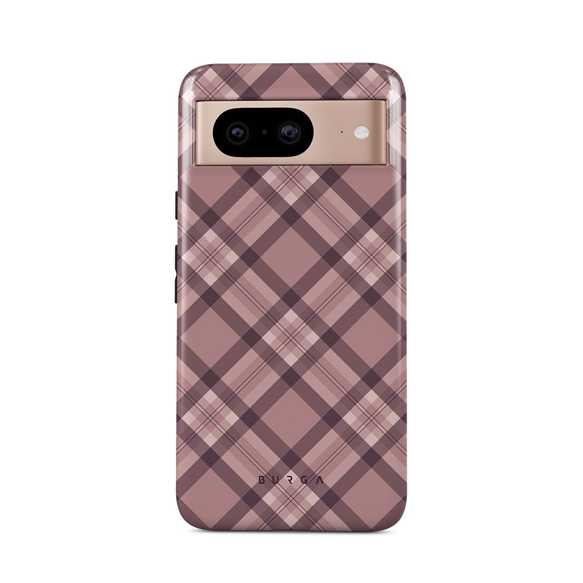 Made for those who hustle hard and look sharp. Our ASAP Google Pixel 8 phone case design features a sleek rosé-gray background with diagonal plaid in soft grey and deep pink—mixing modern flair with understated elegance. For the pros who know that style and speed go hand-in-hand.