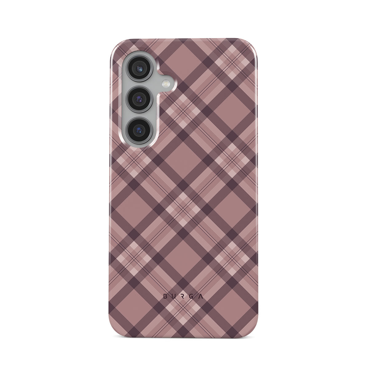 Made for those who hustle hard and look sharp. Our ASAP Samsung Galaxy S24 phone case design features a sleek rosé-gray background with diagonal plaid in soft grey and deep pink—mixing modern flair with understated elegance. For the pros who know that style and speed go hand-in-hand.