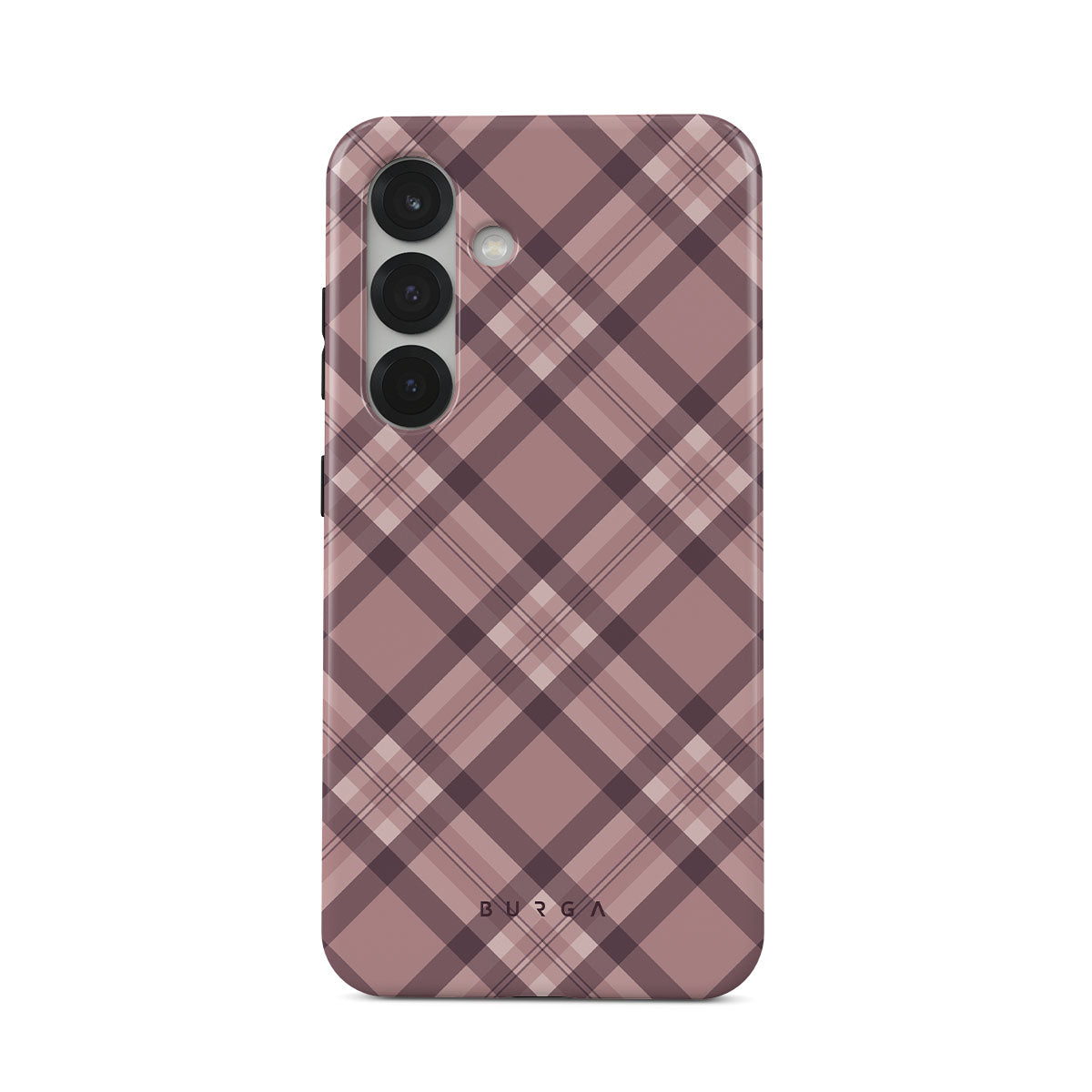 Made for those who hustle hard and look sharp. Our ASAP Samsung Galaxy S25 Plus phone case design features a sleek rosé-gray background with diagonal plaid in soft grey and deep pink—mixing modern flair with understated elegance. For the pros who know that style and speed go hand-in-hand.
