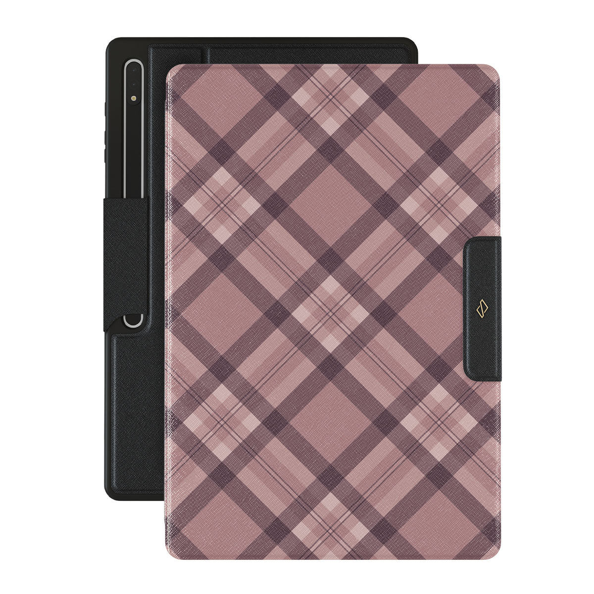 Made for those who hustle hard and look sharp. Our ASAP Samsung Galaxy Tab S9 Ultra folio case design features a sleek rosé-gray background with diagonal plaid in soft grey and deep pink—mixing modern flair with understated elegance. For the pros who know that style and speed go hand-in-hand.