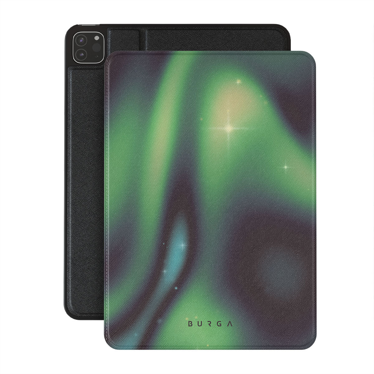 Nature's magic shines through in a mysterious display of lights. Delicate colors intertwine in a ballet of beauty and grace. Poetic harmony is captured with each swirl. It feels as if you're holding a piece of the night sky. Experience the serene grandeur of the Aurora folio case design.