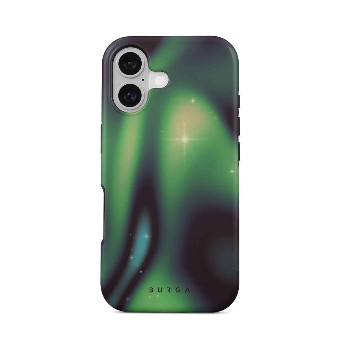 Nature's magic shines through in a mysterious display of lights. Delicate colors intertwine in a ballet of beauty and grace. Poetic harmony is captured with each swirl. It feels as if you're holding a piece of the night sky. Experience the serene grandeur of the Aurora iPhone 17 phone case design.