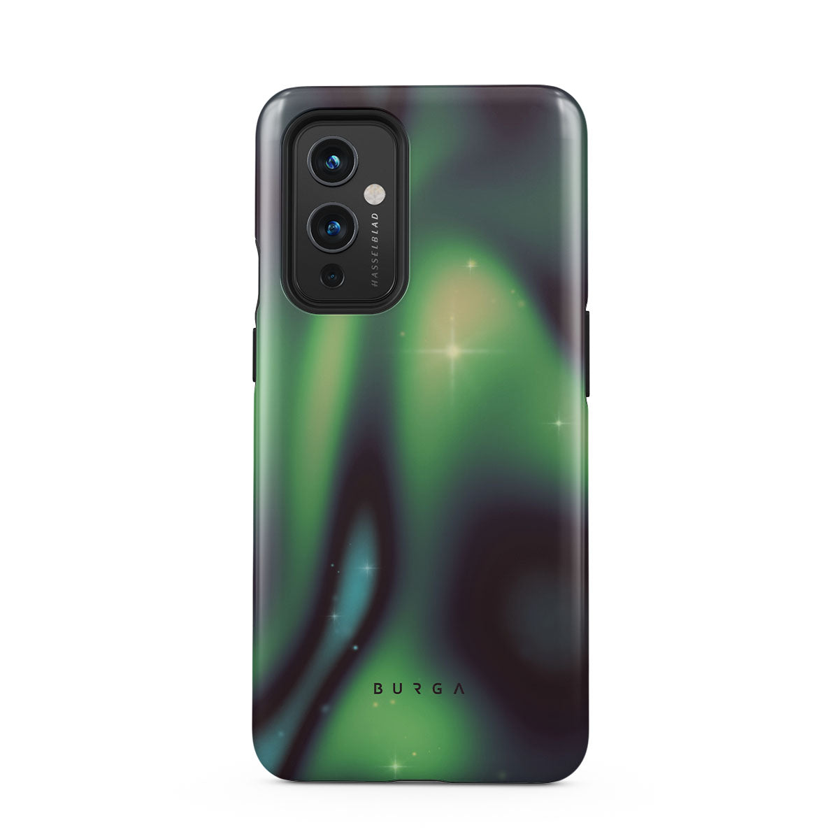 Nature's magic shines through in a mysterious display of lights. Delicate colors intertwine in a ballet of beauty and grace. Poetic harmony is captured with each swirl. It feels as if you're holding a piece of the night sky. Experience the serene grandeur of the Aurora OnePlus 9 phone case design.