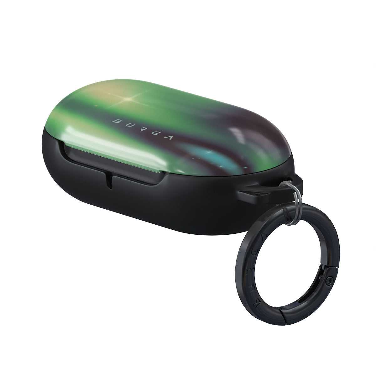 Nature's magic shines through in a mysterious display of lights. Delicate colors intertwine in a ballet of beauty and grace. Poetic harmony is captured with each swirl. It feels as if you're holding a piece of the night sky. Experience the serene grandeur of the Aurora Samsung Galaxy Buds Plus case cover design.