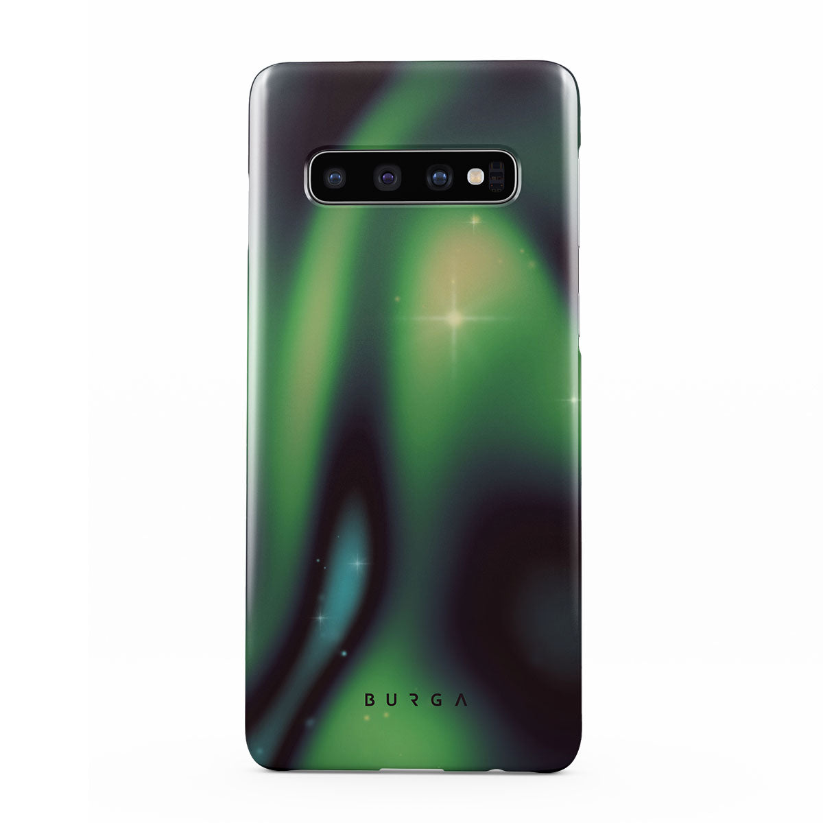 Nature's magic shines through in a mysterious display of lights. Delicate colors intertwine in a ballet of beauty and grace. Poetic harmony is captured with each swirl. It feels as if you're holding a piece of the night sky. Experience the serene grandeur of the Aurora Samsung Galaxy S10 Plus phone case design.