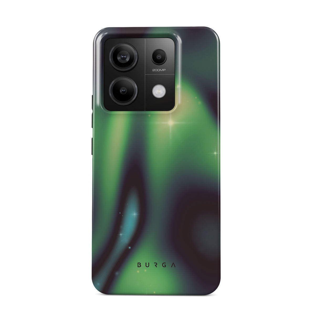 Nature's magic shines through in a mysterious display of lights. Delicate colors intertwine in a ballet of beauty and grace. Poetic harmony is captured with each swirl. It feels as if you're holding a piece of the night sky. Experience the serene grandeur of the Aurora Xiaomi Redmi Note 13 Pro 5G phone case design.
