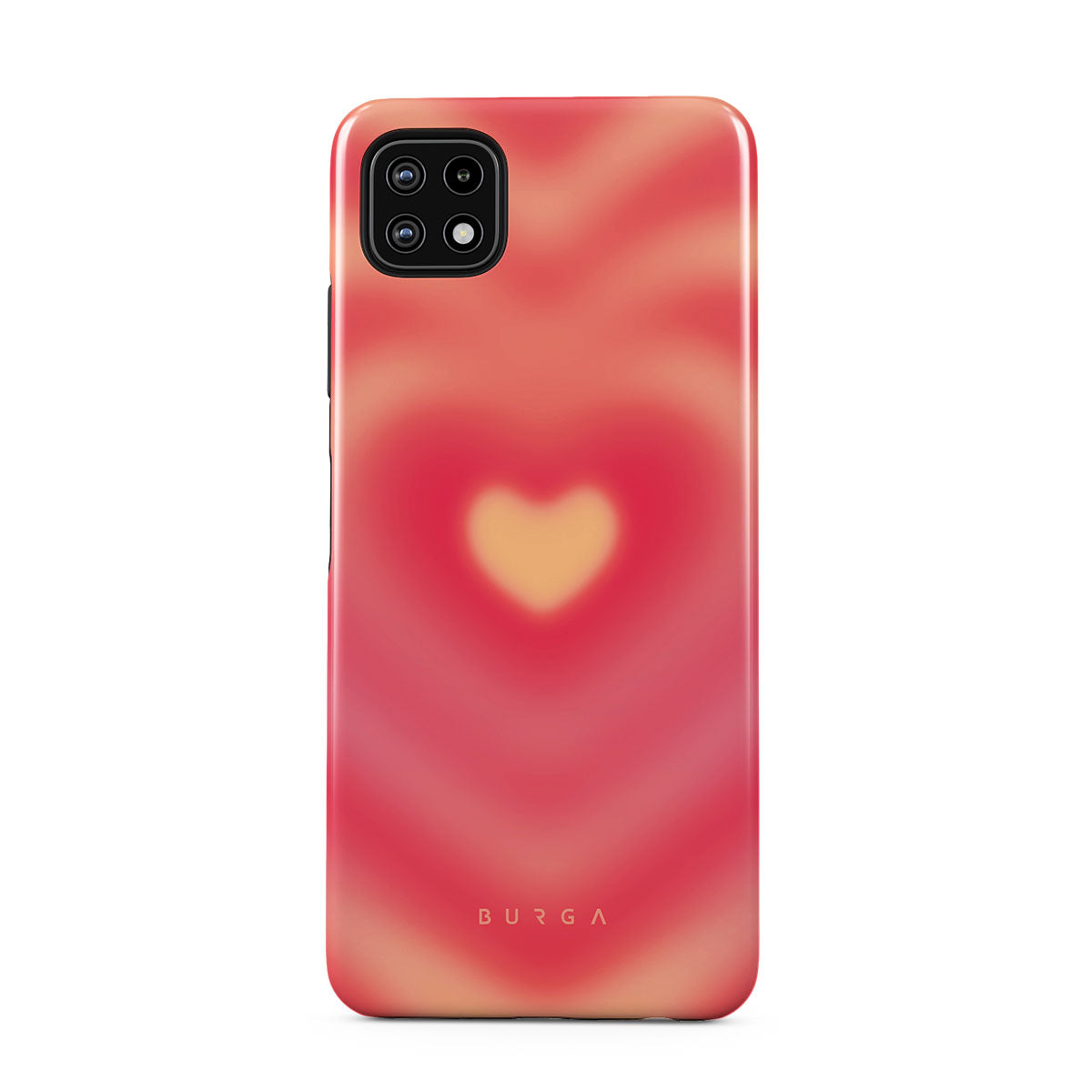 Feel the warmth of Awakening. With its glowing pink-orange shades and a heart at the center, this design is an emblem of one's inner essence. The Awakening Samsung Galaxy A22 5G phone case design reminds us of the soul's luminous rebirth, capturing the spirit of the Aura Collection and igniting the magic within.