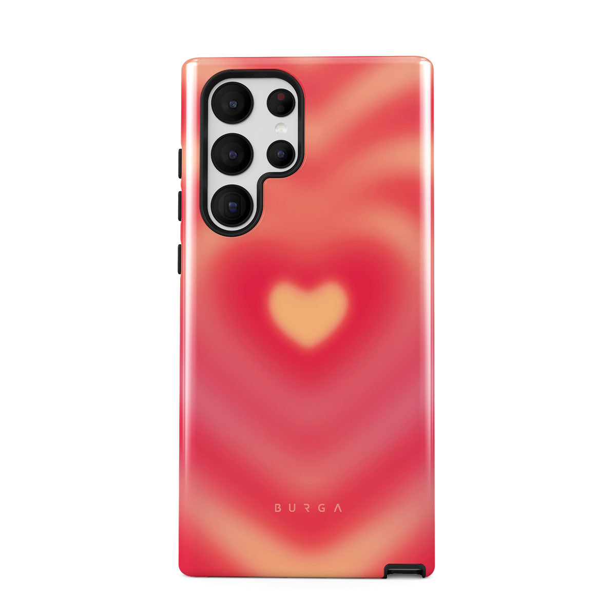 Feel the warmth of Awakening. With its glowing pink-orange shades and a heart at the center, this design is an emblem of one's inner essence. The Awakening Samsung Galaxy S22 Ultra phone case design reminds us of the soul's luminous rebirth, capturing the spirit of the Aura Collection and igniting the magic within.