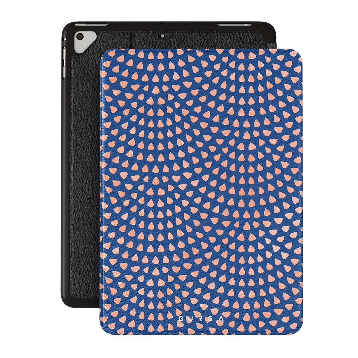 Rose gold teardrops meet a deep shade of blue in our Azure Waters iPad 9.7 (6th/5th Gen) folio case and create the duo worth taking with you every evening out. Add a touch of strictness with the symmetrical teardrops pattern paving the way and keeping your iPad out of harm's way with the case that is as protective as it is beautiful.