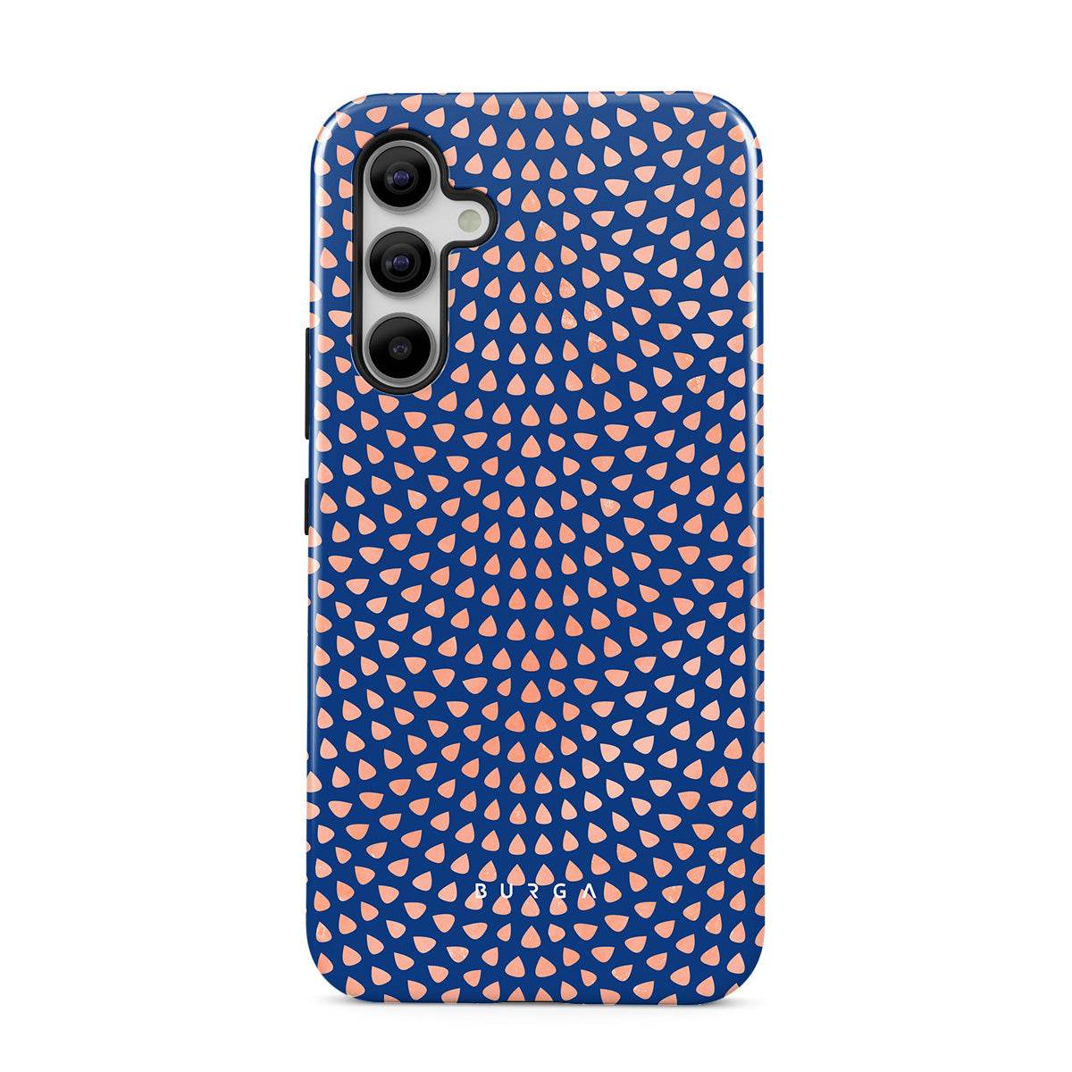 Rose gold teardrops meet a deep shade of blue in our Azure Waters Samsung Galaxy A54 phone case and create the duo worth taking with you every evening out. Add a touch of strictness with the symmetrical teardrops pattern paving the way and keeping your phone out of harm's way with the case that is as protective as it is beautiful.