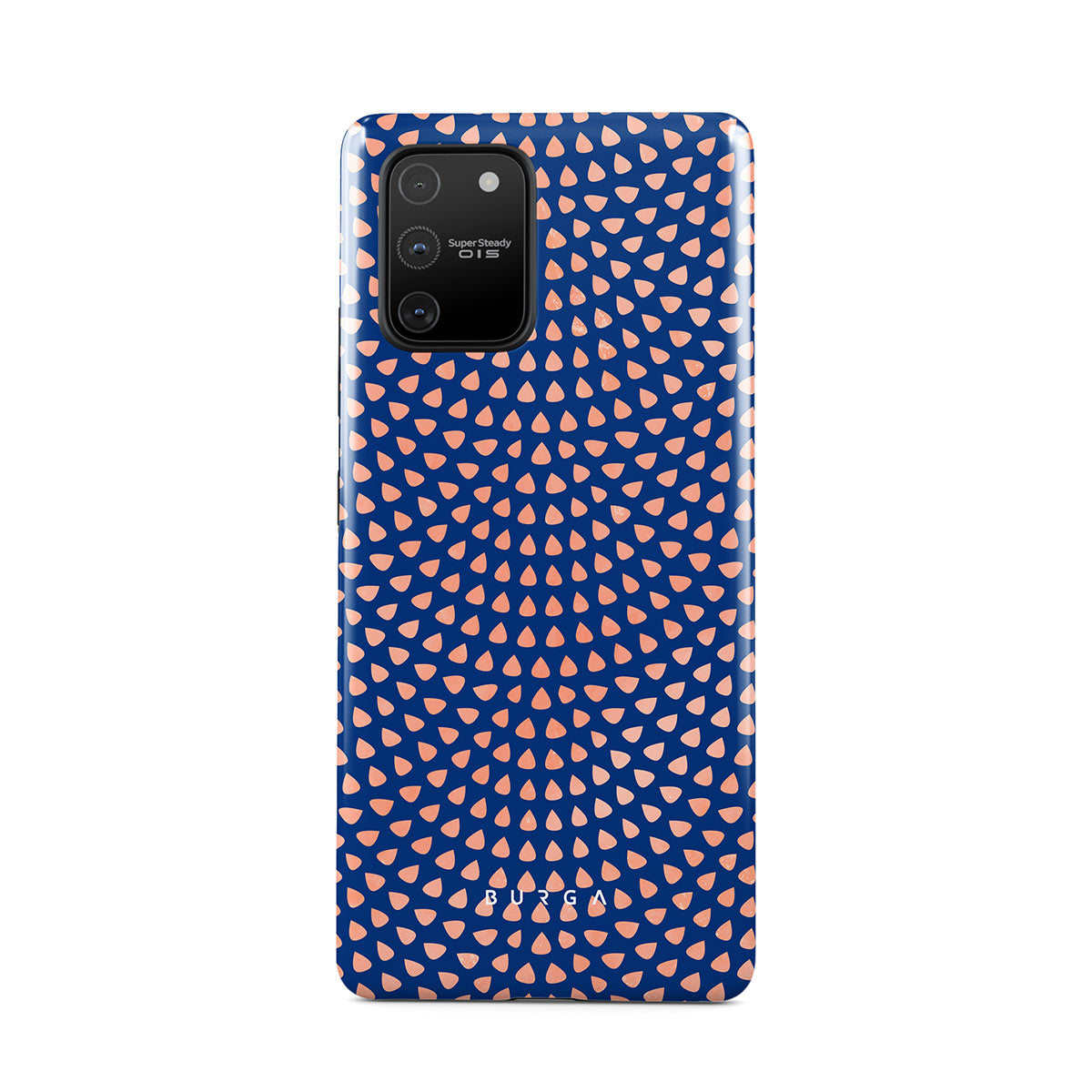 Rose gold teardrops meet a deep shade of blue in our Azure Waters Samsung Galaxy S10 Lite phone case and create the duo worth taking with you every evening out. Add a touch of strictness with the symmetrical teardrops pattern paving the way and keeping your phone out of harm's way with the case that is as protective as it is beautiful.