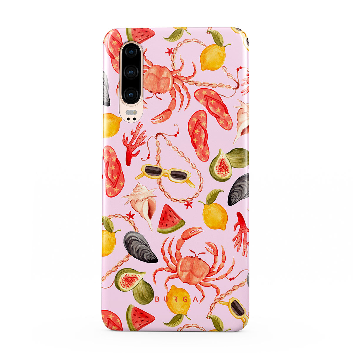 Huawei P30 phone case design is a cocktail of sun, sass, and good vibes, all shaken—not stirred.