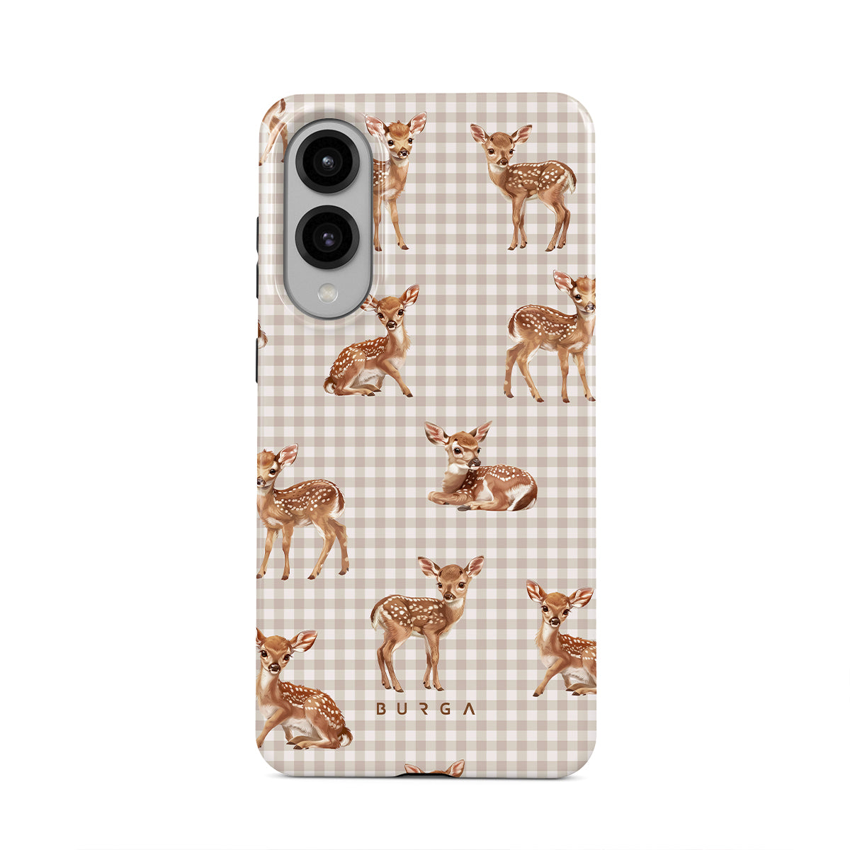 Gentle deers, frozen in time on a field of nostalgia, invite you to rediscover the playful innocence of quiet afternoons in the shade of old trees. Meet our Bambi Samsung Galaxy S25 Edge phone case design.