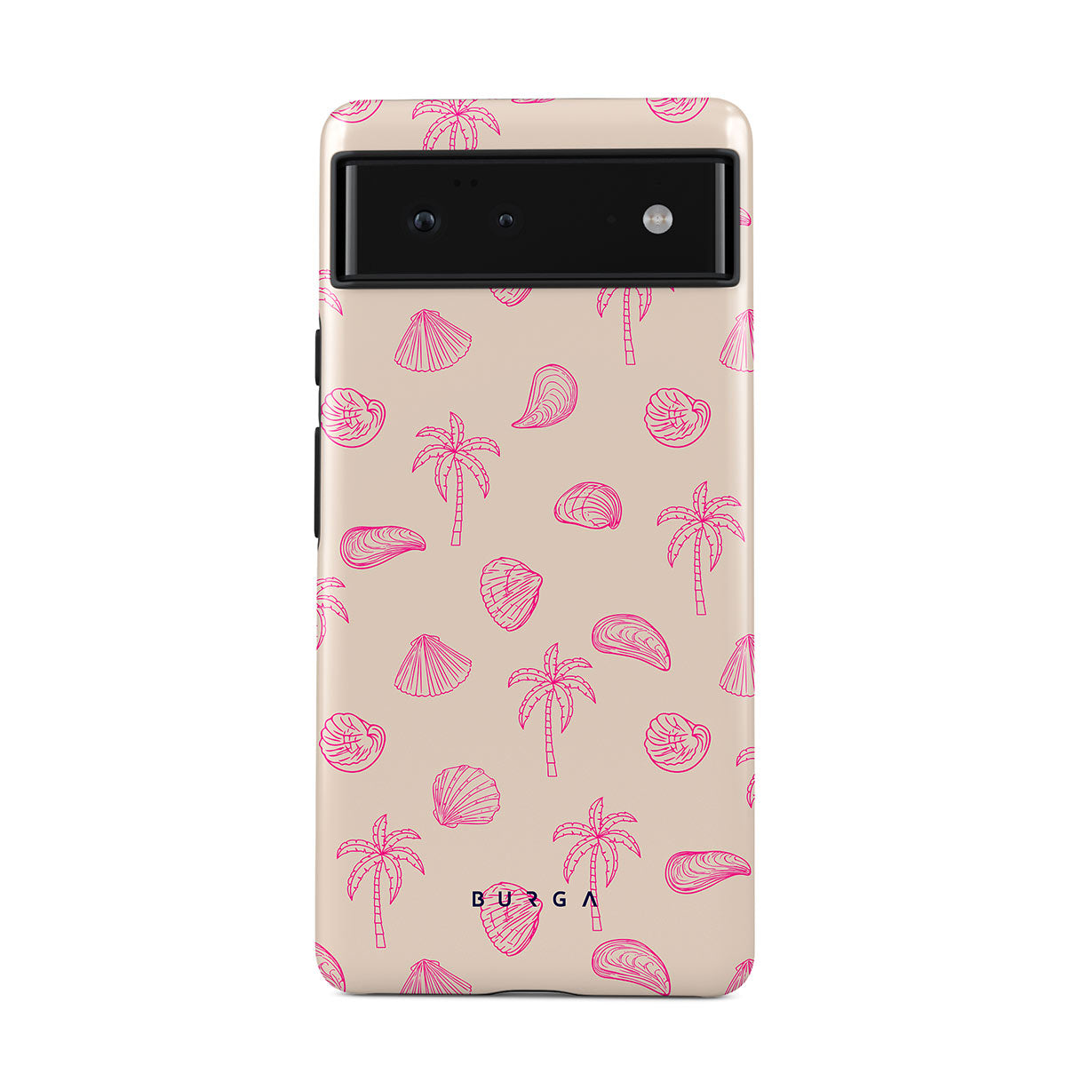 Lovely, beachy, and pink is what we can say about our Beach Please Google Pixel 6 phone case design. The playful pattern of palms and seashells will look cute in your summer selfies. Add that playful touch to your everyday life and keep your phone safe from scratches the sand can make!