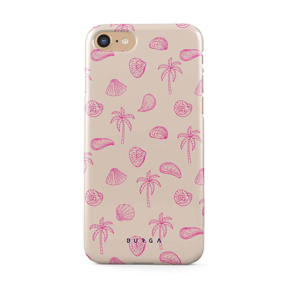 Lovely, beachy, and pink is what we can say about our Beach Please iPhone SE (2022) phone case design. The playful pattern of palms and seashells will look cute in your summer selfies. Add that playful touch to your everyday life and keep your phone safe from scratches the sand can make!