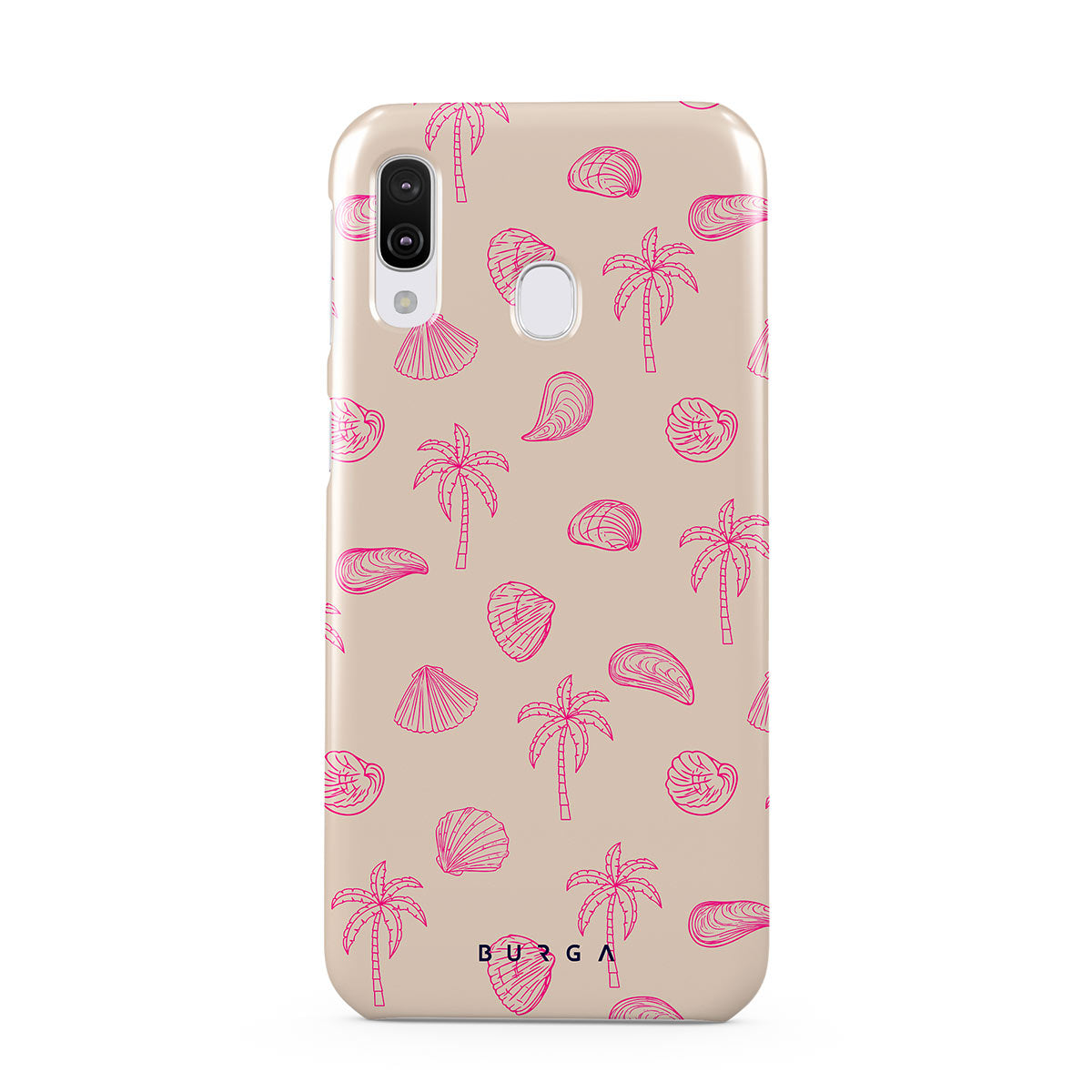 Lovely, beachy, and pink is what we can say about our Beach Please Samsung Galaxy A40 phone case design. The playful pattern of palms and seashells will look cute in your summer selfies. Add that playful touch to your everyday life and keep your phone safe from scratches the sand can make!