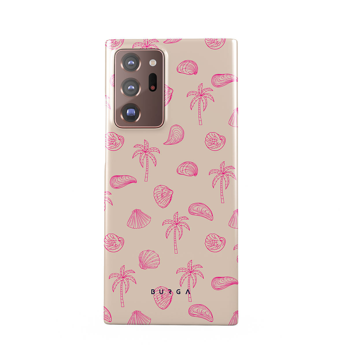 Lovely, beachy, and pink is what we can say about our Beach Please Samsung Galaxy Note 20 Ultra 4G / 5G phone case design. The playful pattern of palms and seashells will look cute in your summer selfies. Add that playful touch to your everyday life and keep your phone safe from scratches the sand can make!