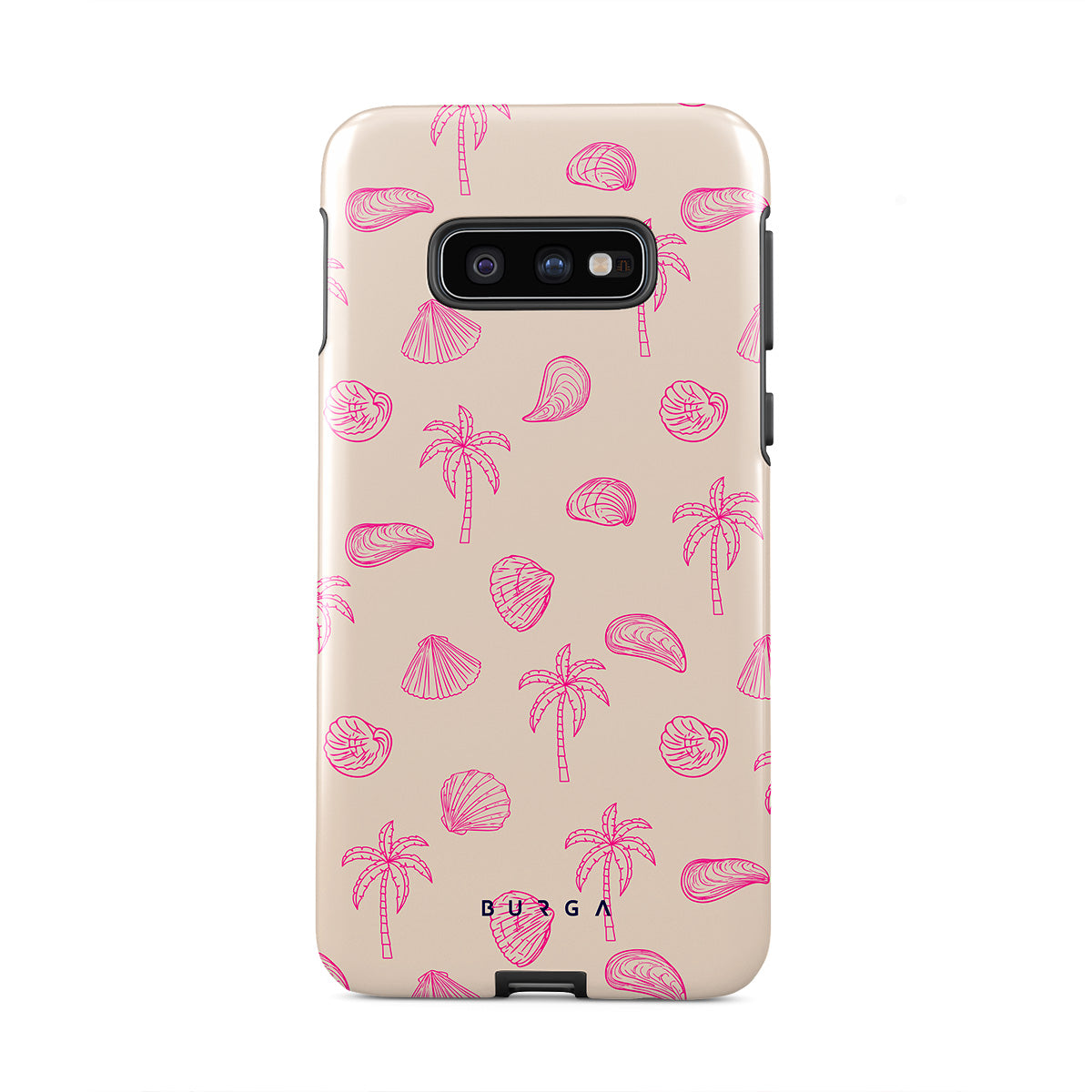 Lovely, beachy, and pink is what we can say about our Beach Please Samsung Galaxy S10E phone case design. The playful pattern of palms and seashells will look cute in your summer selfies. Add that playful touch to your everyday life and keep your phone safe from scratches the sand can make!