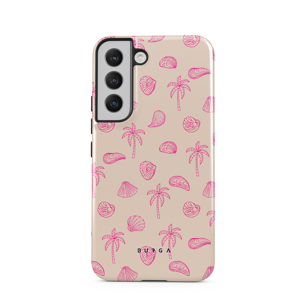 Lovely, beachy, and pink is what we can say about our Beach Please Samsung Galaxy S22 Plus phone case design. The playful pattern of palms and seashells will look cute in your summer selfies. Add that playful touch to your everyday life and keep your phone safe from scratches the sand can make!