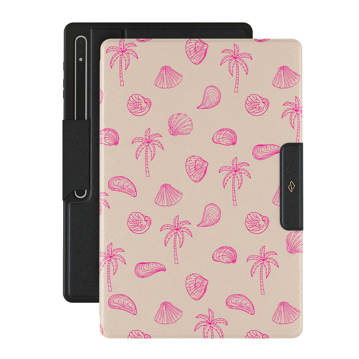 Lovely, beachy, and pink is what we can say about our Beach Please Samsung Galaxy Tab S8 Ultra folio case design. The playful pattern of palms and seashells will look cute in your summer selfies. Add that playful touch to your everyday life and keep your Galaxy Tab safe from scratches the sand can make!