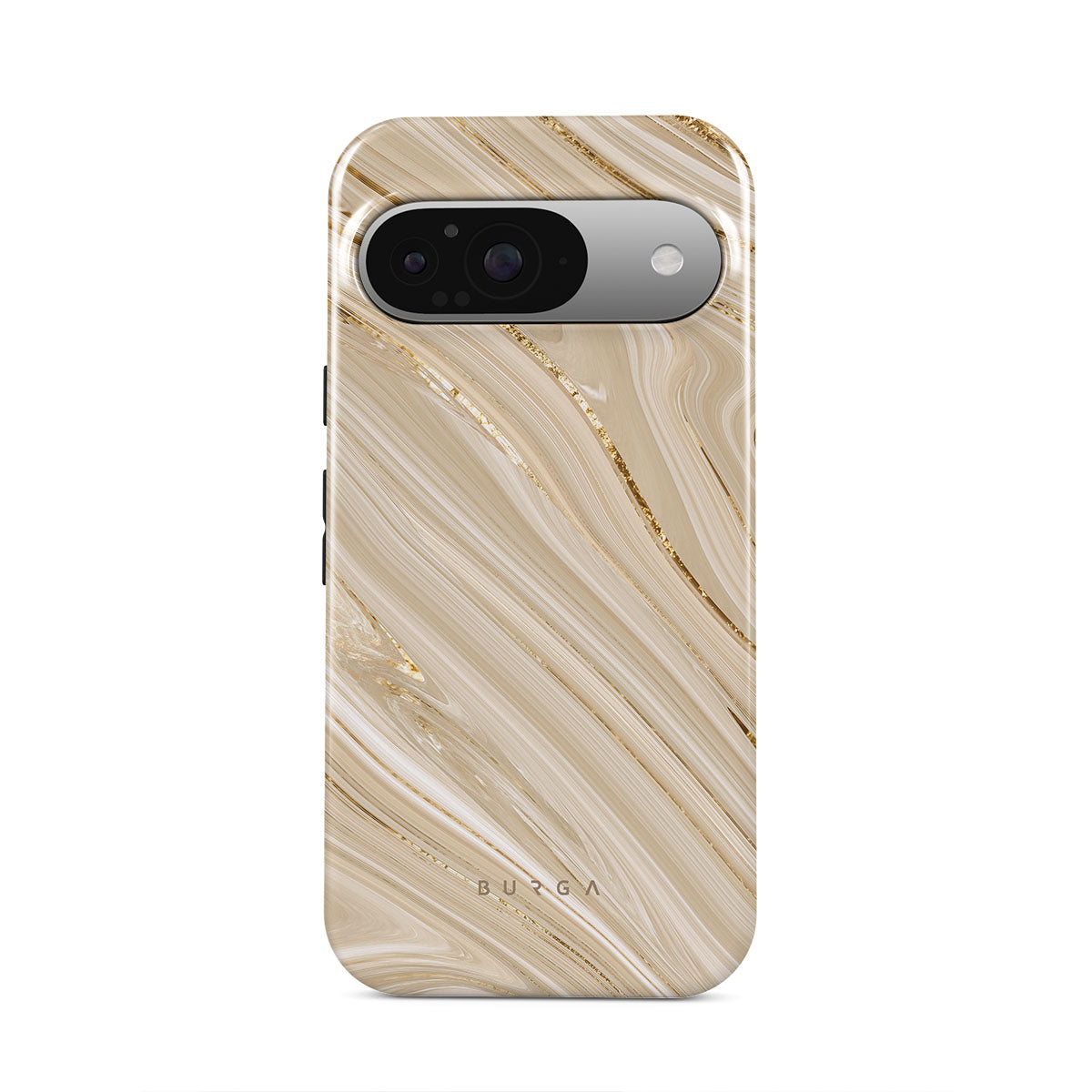 The Full Glam Google Pixel 9 phone case exudes elegance and softness in the beige color scheme with golden accents. The delicate design of the phone case will enhance your style and keep your phone safe and sound while doing that.