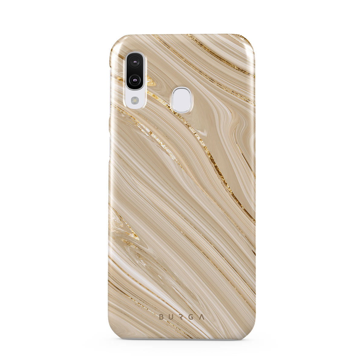The Full Glam Samsung Galaxy A40 phone case exudes elegance and softness in the beige color scheme with golden accents. The delicate design of the phone case will enhance your style and keep your phone safe and sound while doing that.