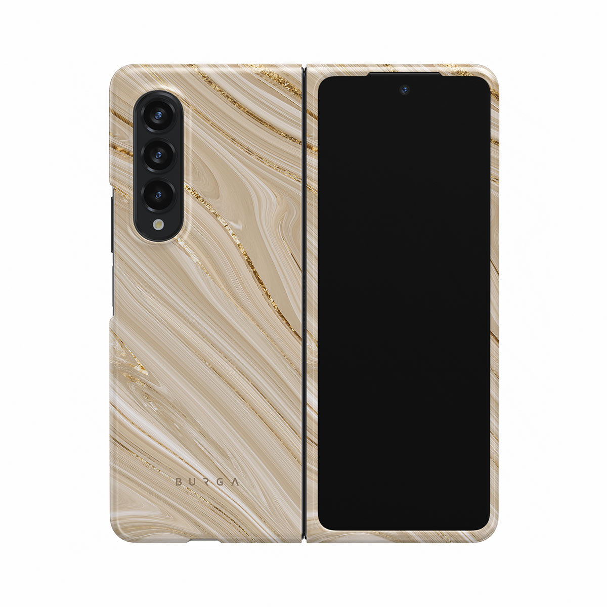 The Full Glam Samsung Galaxy Z Fold 3 phone case exudes elegance and softness in the beige color scheme with golden accents. The delicate design of the phone case will enhance your style and keep your phone safe and sound while doing that.