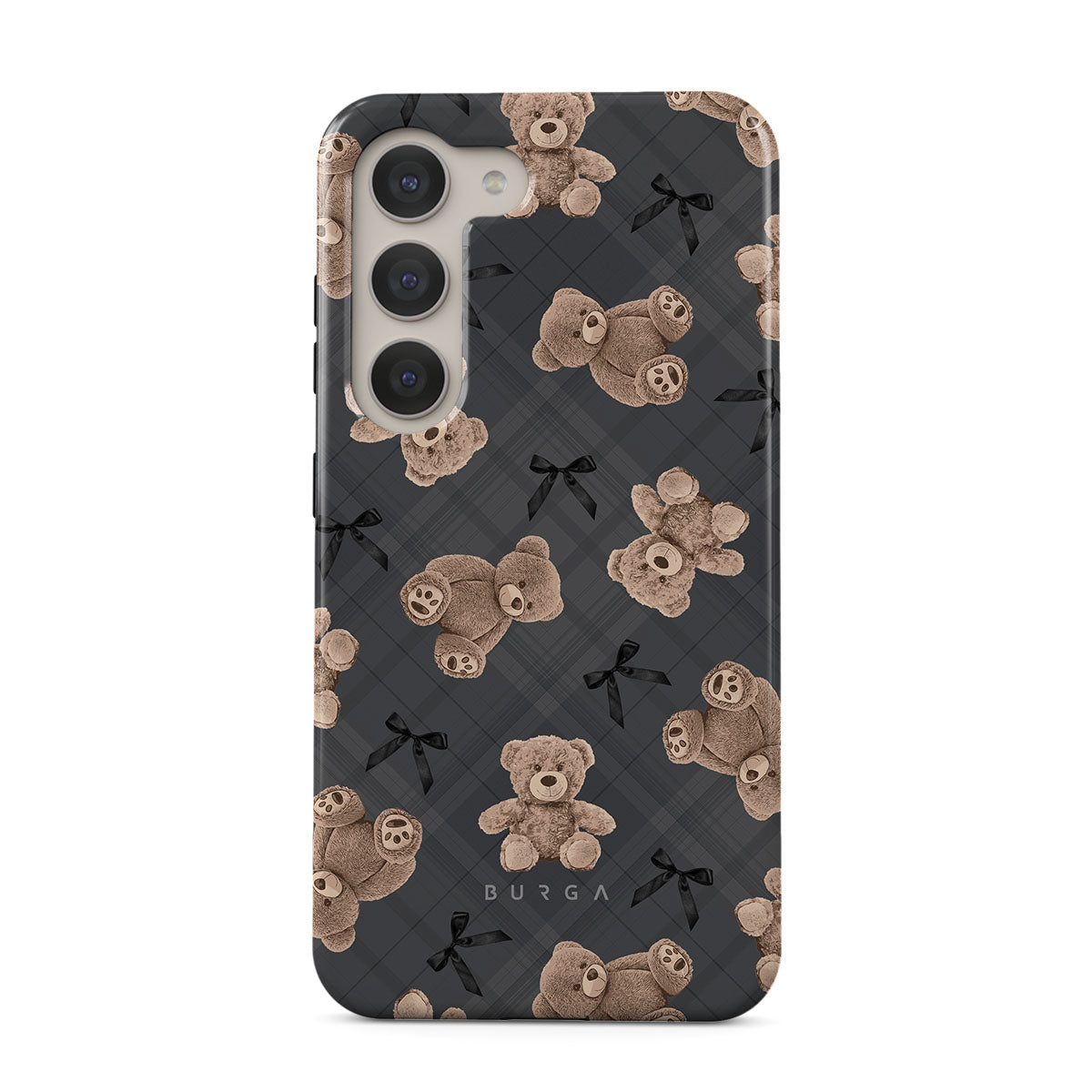 A design blending innocence and sophistication. With teddy bears and a chic gray background, BFF is a throwback to the comforting nostalgia of youth, updated with a touch of modern glam. This design will make you and your Samsung Galaxy S23 Plus phone case inseparable companions, just like the best of friends.