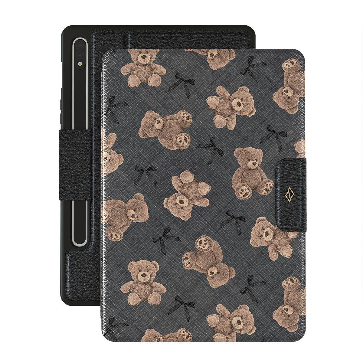 A design blending innocence and sophistication. With teddy bears and a chic gray background, BFF is a throwback to the comforting nostalgia of youth, updated with a touch of modern glam. This design will make you and your Samsung Galaxy Tab S9 folio case inseparable companions, just like the best of friends.