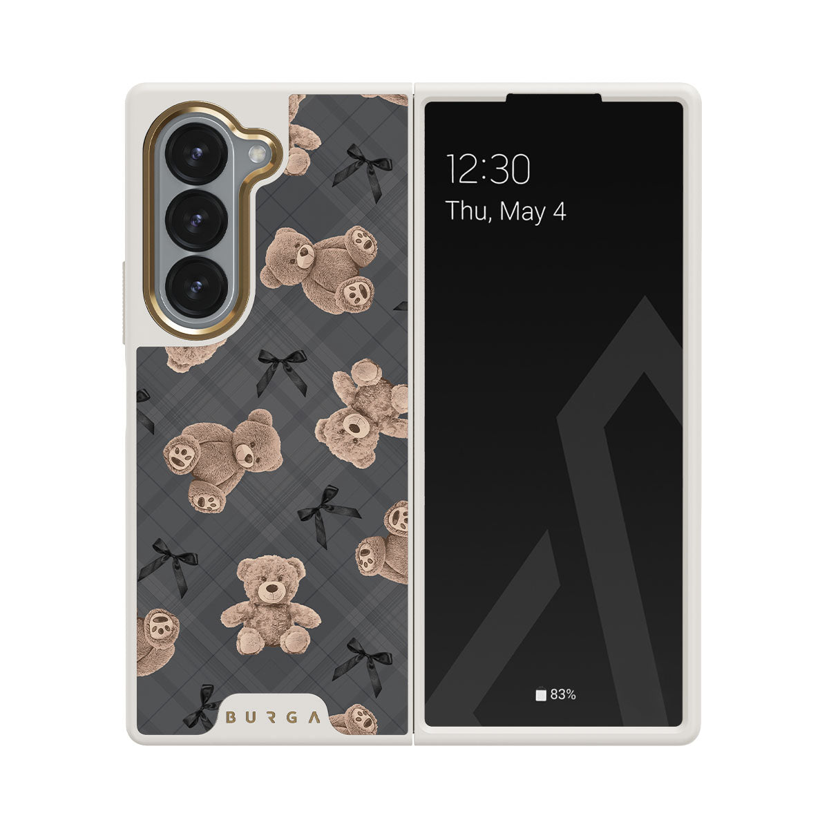 A design blending innocence and sophistication. With teddy bears and a chic gray background, BFF is a throwback to the comforting nostalgia of youth, updated with a touch of modern glam. This design will make you and your Samsung Galaxy Z Fold 6 phone case inseparable companions, just like the best of friends.