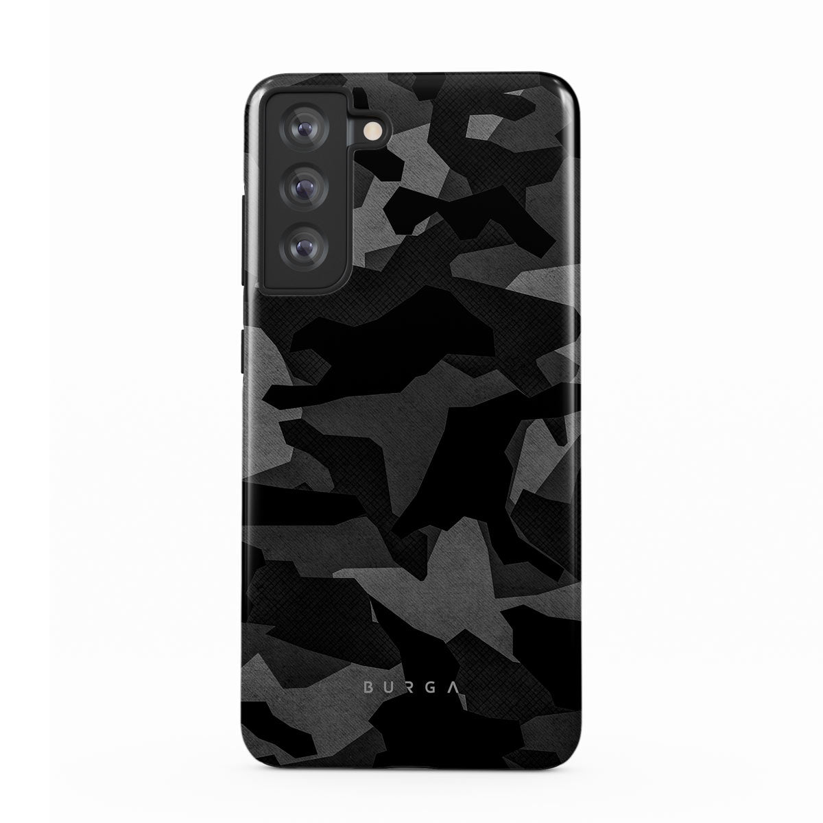 Sometimes, all you need is a possibility to blend into nature. With our Night Black Camo Samsung Galaxy S21 FE phone case, use black camouflage as a way to express your curious side or blend in with the surroundings. A stylish accessory can offer heavy-duty protection too!