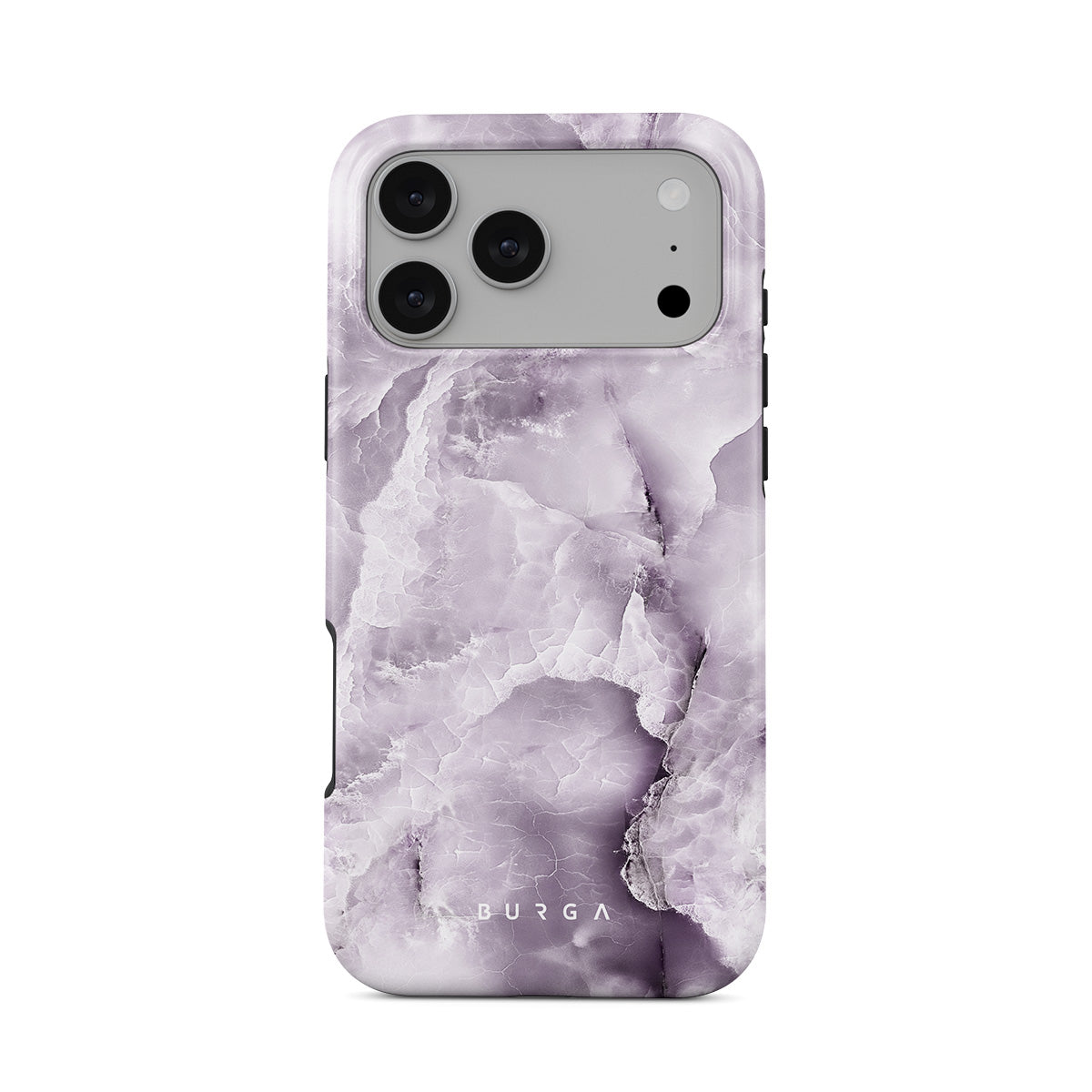 The gray violet-colored Black Currant iPhone 17 Pro Max phone case showcases a soft marble design that will add a touch of luxury to your style. The color itself represents the future and dreams, yet the nature of it offers a calming effect. Keep a piece of serenity in your hands.