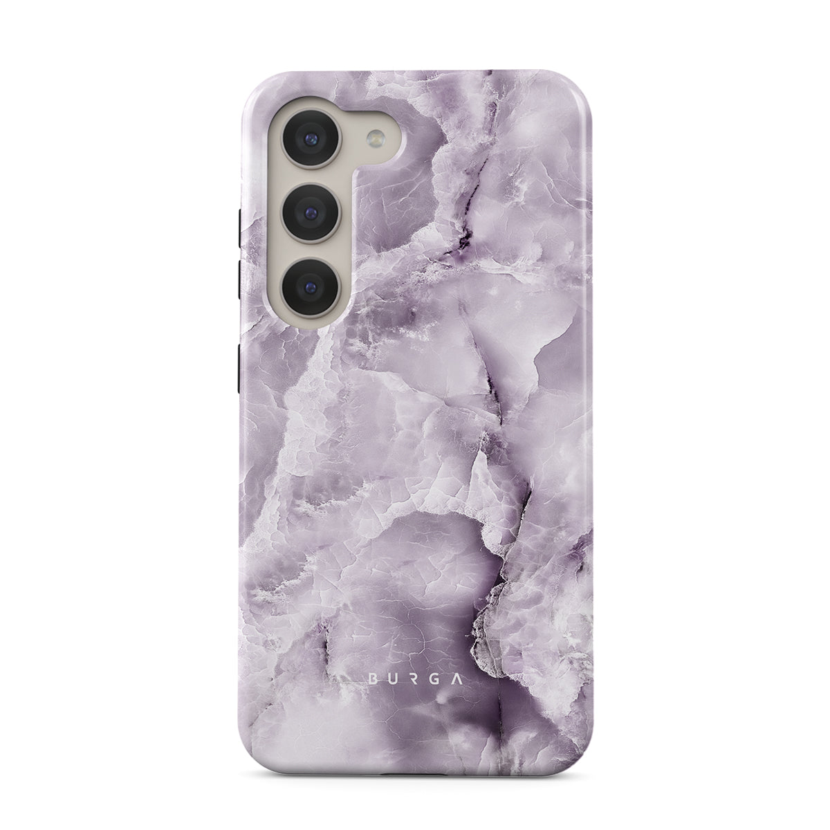 The gray violet-colored Black Currant Samsung Galaxy S23 phone case showcases a soft marble design that will add a touch of luxury to your style. The color itself represents the future and dreams, yet the nature of it offers a calming effect. Keep a piece of serenity in your hands.