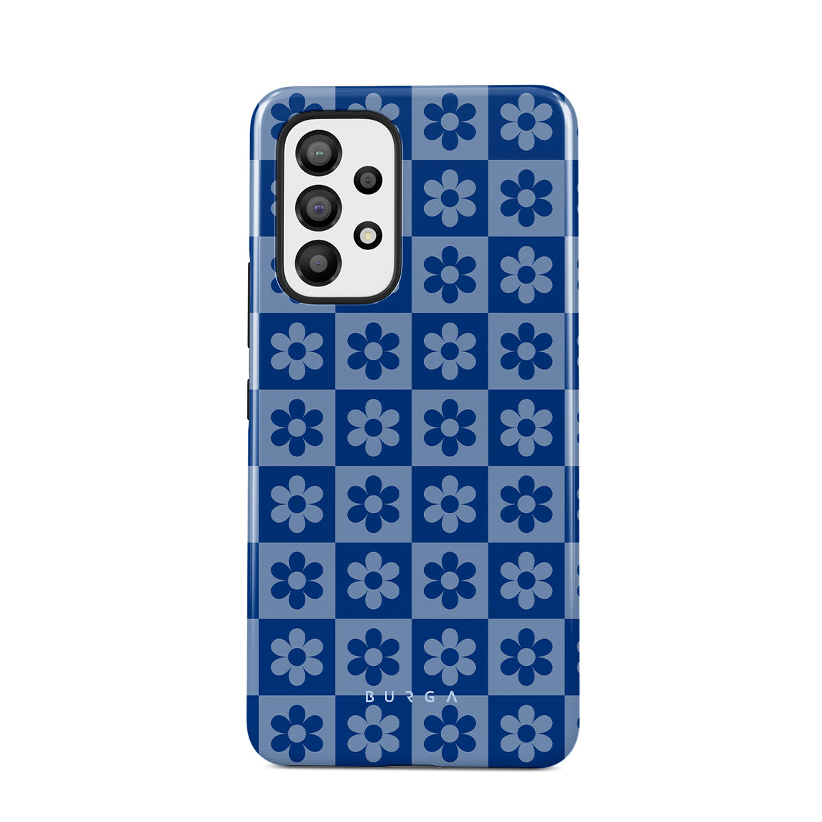 A true statement design, featuring a captivating checkered pattern with icy blue tones and a beautiful flower adorning each square. Our Samsung Galaxy A73 phone case not only offers reliable protection for your device but also captures the essence of the fun and carefree Y2K era. Embrace your inner flower child with the Bloom Boom phone case and let your tech bloom with style.